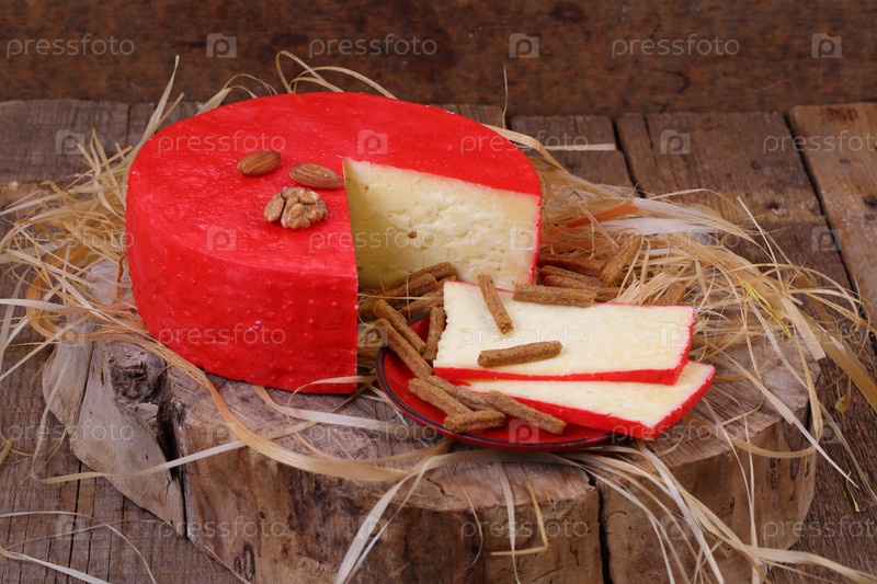 Сыр и орехи на деревянном столе