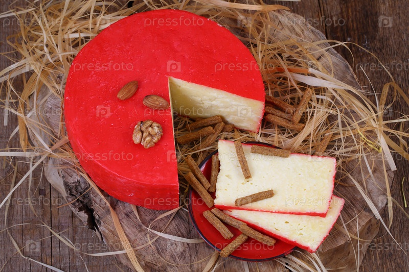 Сыр и орехи на деревянном столе