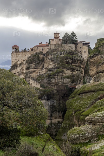 Православные монастыри Метеоры (Греция) на скалах, окутанных туманом