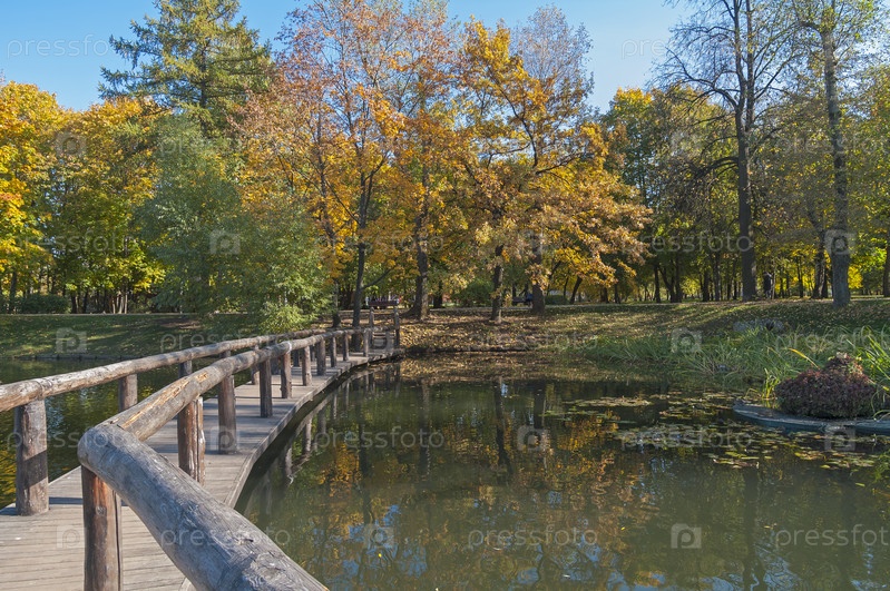 Городской пруд в солнечный осенний день. Воронцовский парк, Москва