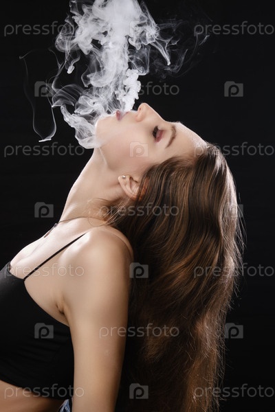 Женщина пускает дым