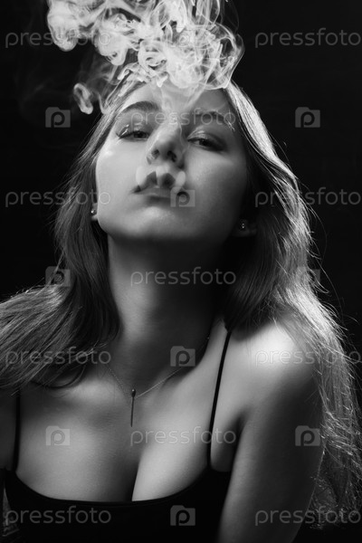 Женщина пускает дым