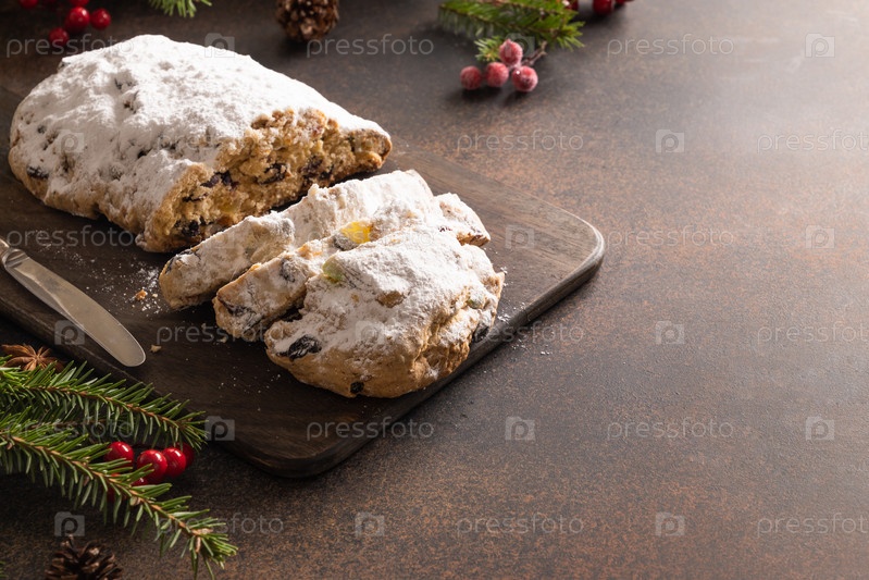 Рождественский столлен - традиционный немецкий хлеб на коричневом фоне. Закрыть