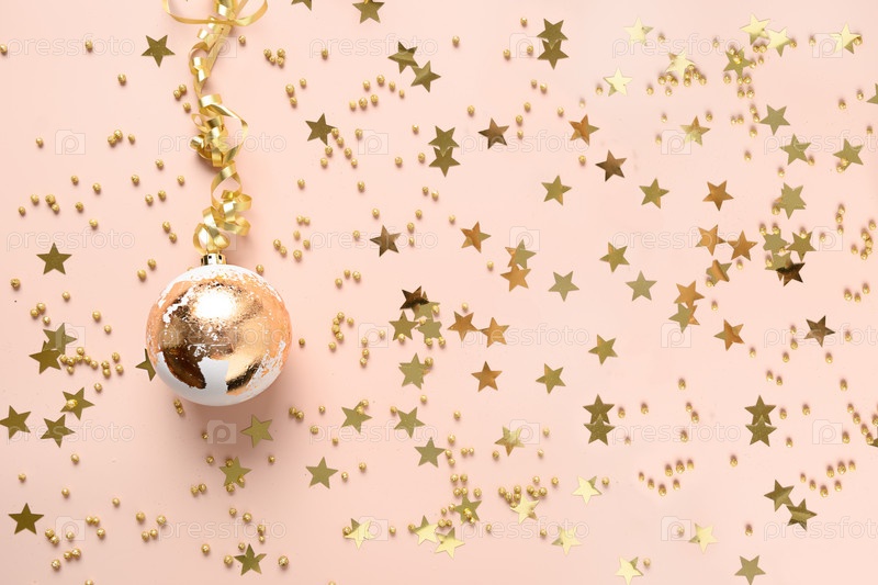 Рождественские шары с золотым поталью на розовом фоне с копией пространства