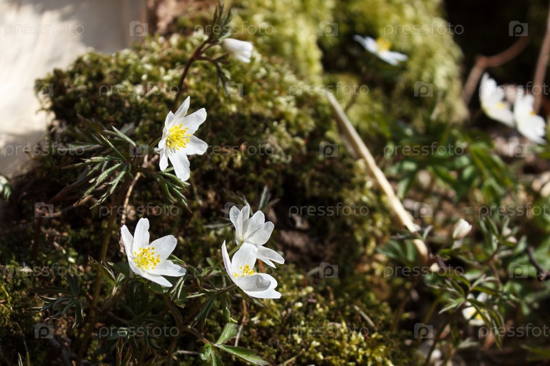 Цветы анемона в лесу весной