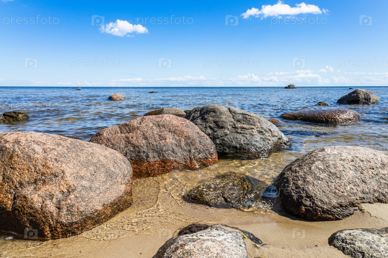 Береговая линия в балтийском море летом с валунами
