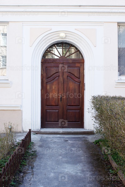 Винтажная красивая входная дверь дневного света на открытом воздухе. передний план