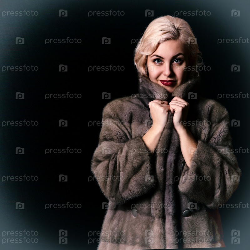 Портрет молодой блондинки в шубе в студии