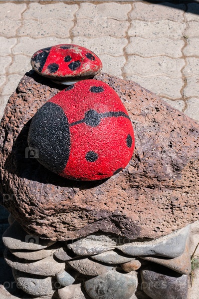 Армения, Ереван, сентябрь 2022 г. Каменное насекомое на подставке в парке