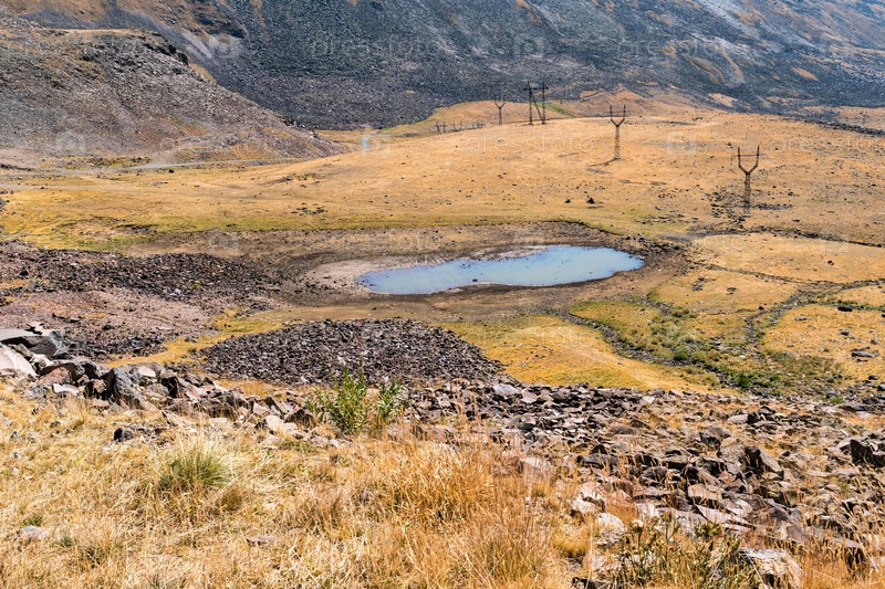 Небольшое озеро в горах среди осыпи