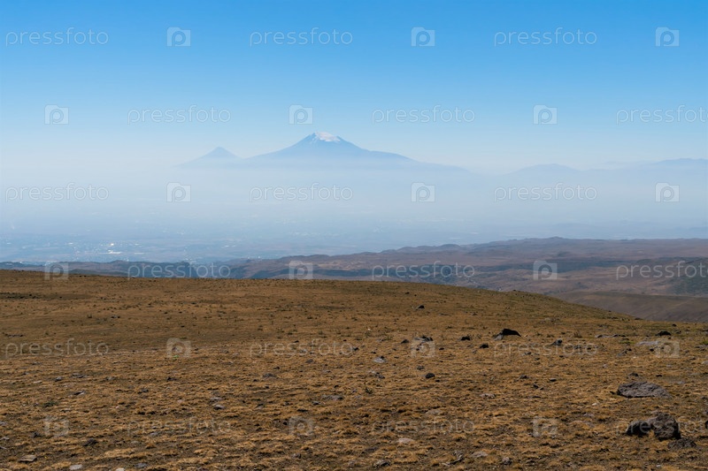 Вершина горы Арарат в облаках над горной долиной