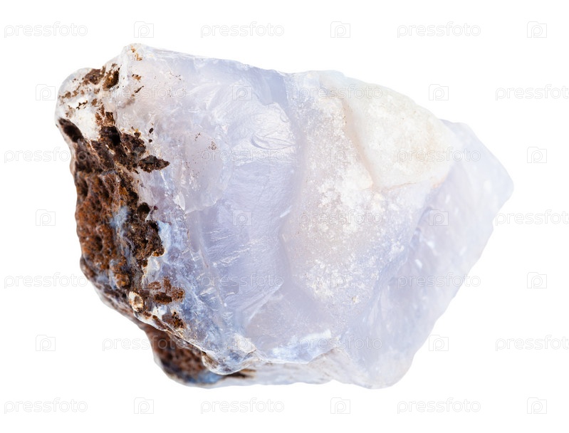 Неполированная голубая скала Халцедон, изолированная на белом