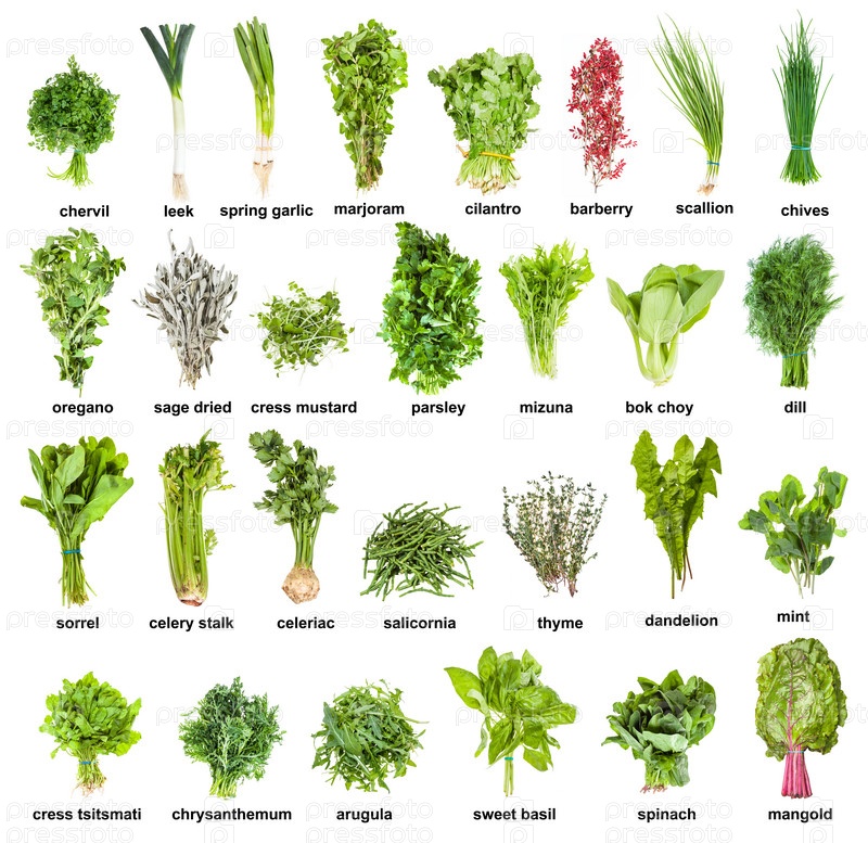 Сбор различных кухонных трав с названиями