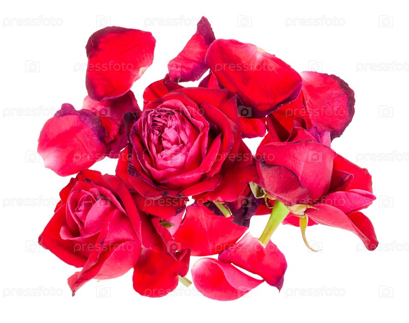 Куча увядших лепестков и цветков красной розы