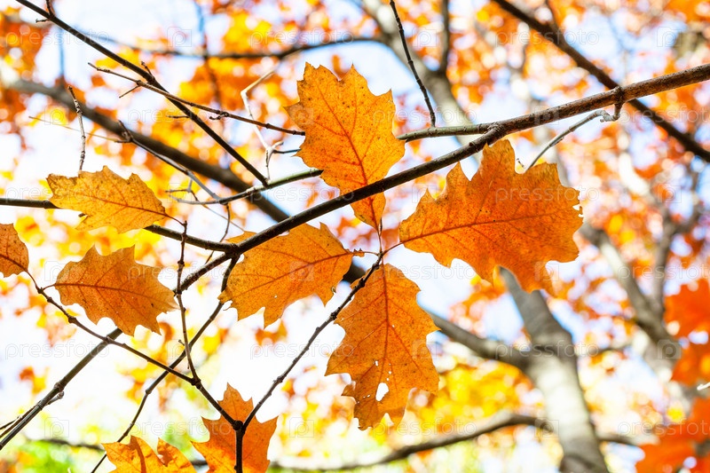 Веточки с оранжевыми листьями красного дуба крупным планом