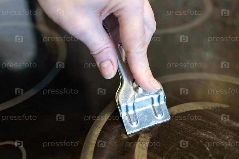 Очистка сгоревшей черной керамической плиты бритвой