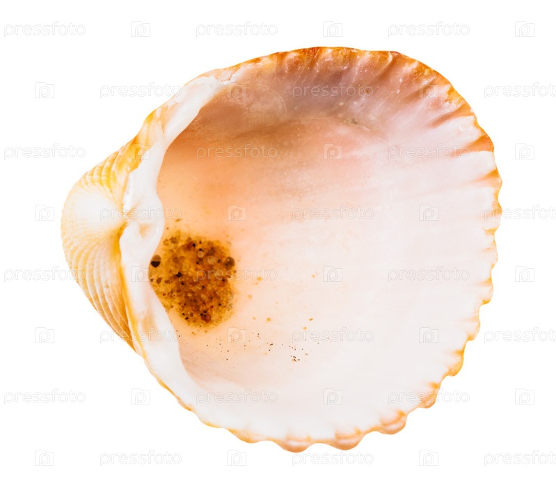 Пустая оранжевая скорлупа моллюска, изолированная на белом