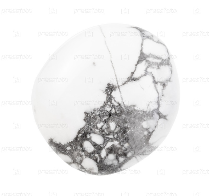 Полированный белый драгоценный камень Хаулит, изолированный на белом