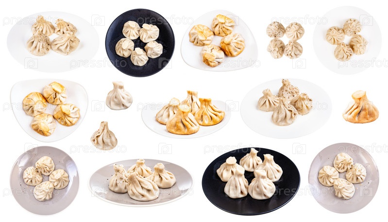 Набор различных хинкали, изолированных на белом