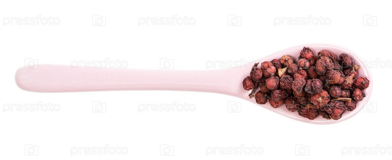 Керамическая ложка с изолированными сухими плодами лимонника
