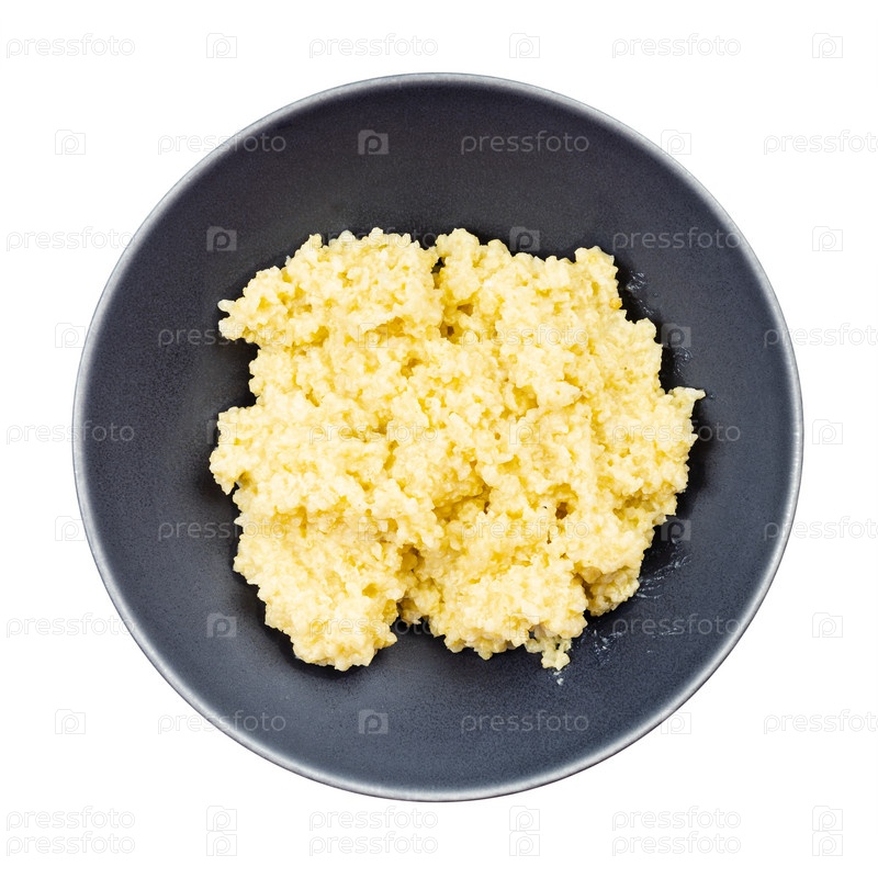 Вид сверху на вареную кашу из пшенной крупы