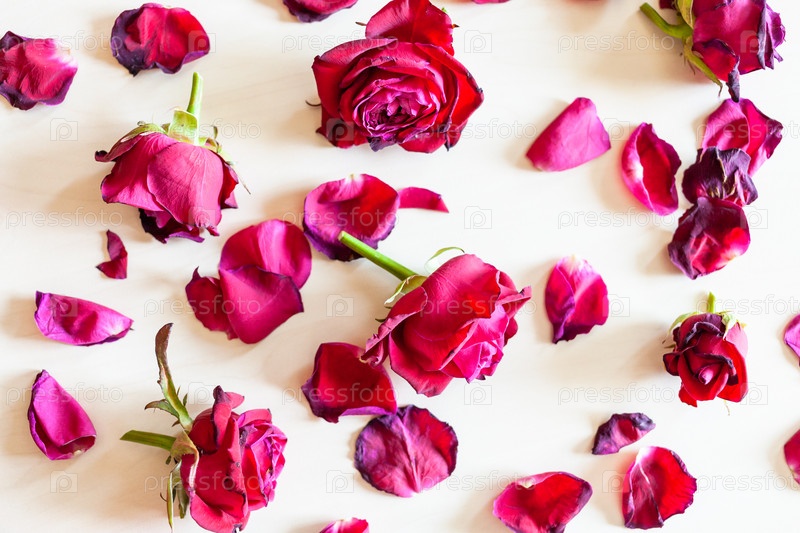 Увядшие цветы красной розы на фоне бледного дерева