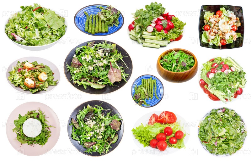 Набор различных свежих салатов из листовых овощей