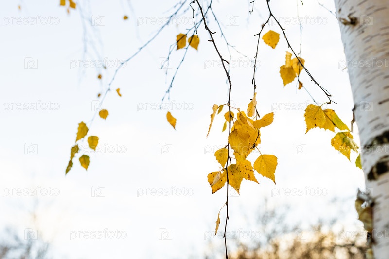Ветки березы с желтыми листьями осенью