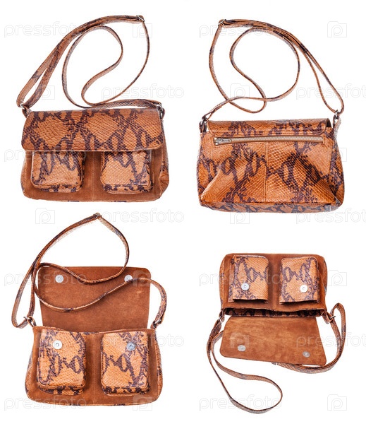 Набор коричневых сумочек ручной работы из кожи змеи