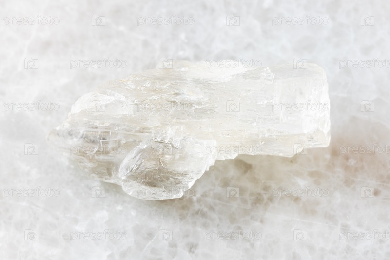 Неполированный петалитовый камень на белом мраморе