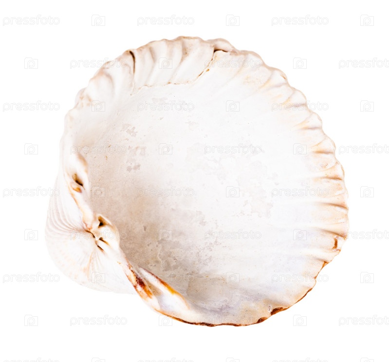 Пустая белая скорлупа моллюска, изолированная на белом
