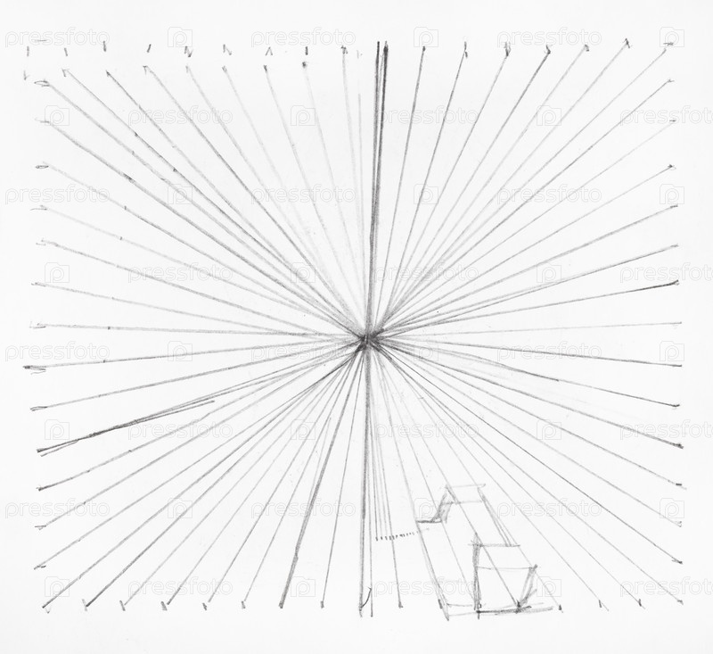 Схождение линий в центре квадрата карандашом