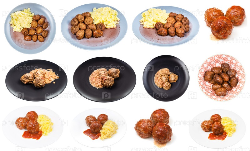 Набор различных блюд с изолированными фрикадельками
