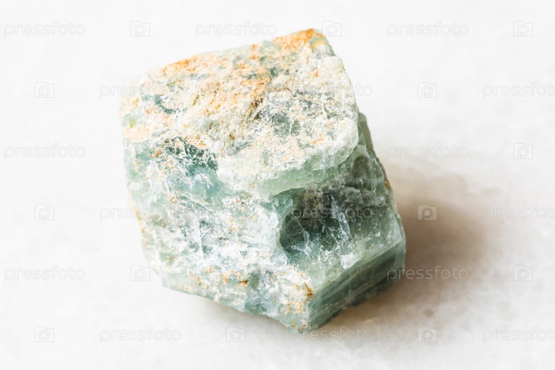 Необработанный апатитовый камень на белом мраморе