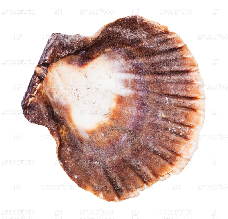 Пустая темно-коричневая оболочка гребешка изолирована