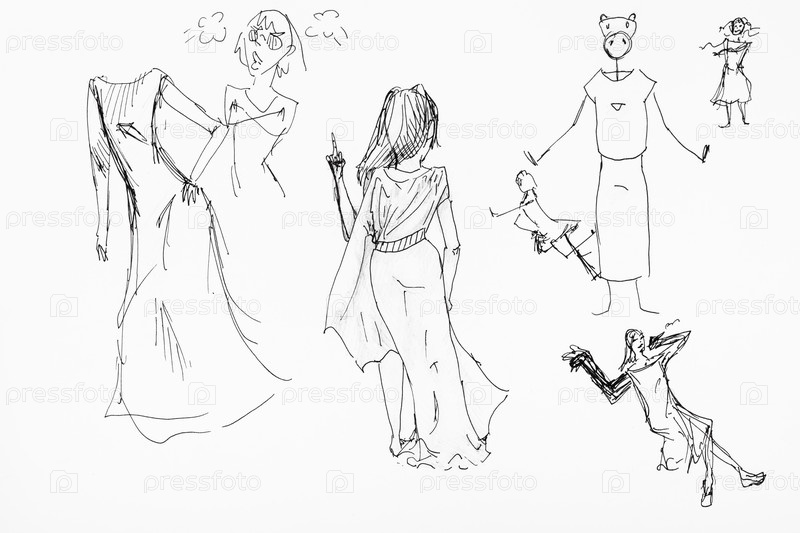 Эскизы женских фигур в длинных платьях