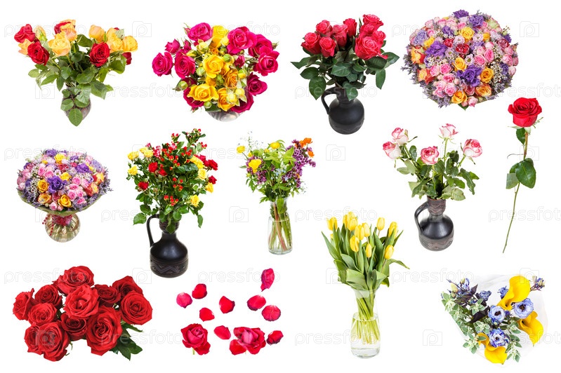 Набор различных букетов изолированных цветов