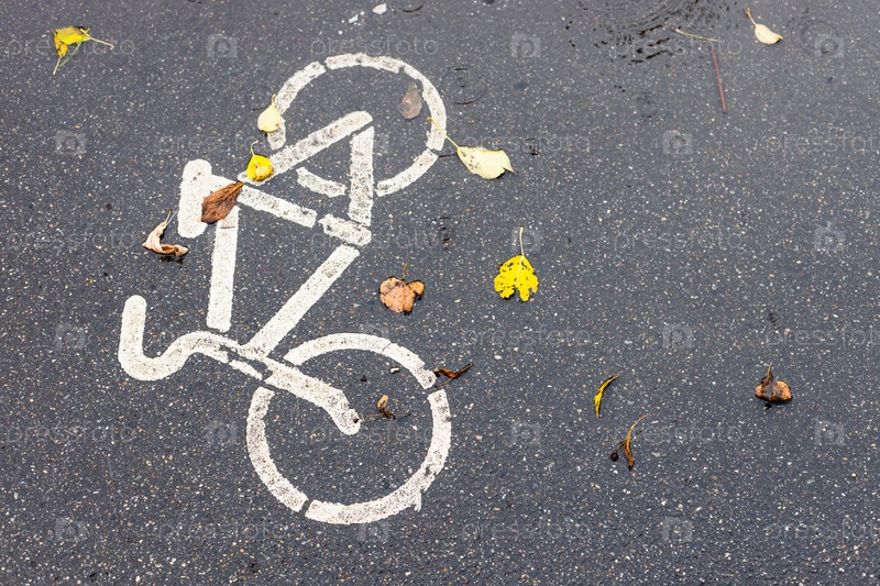 Мокрая поверхность велосипедной дорожки в городе под дождем