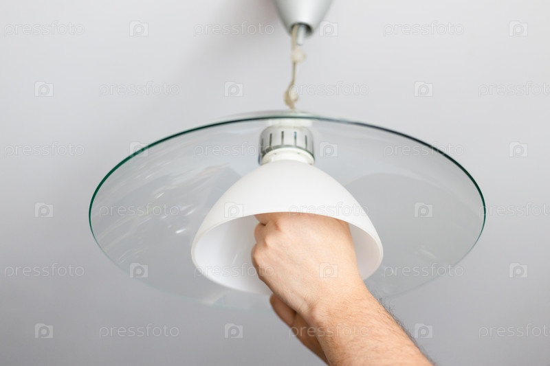 Мужчина устанавливает абажур потолочной лампы