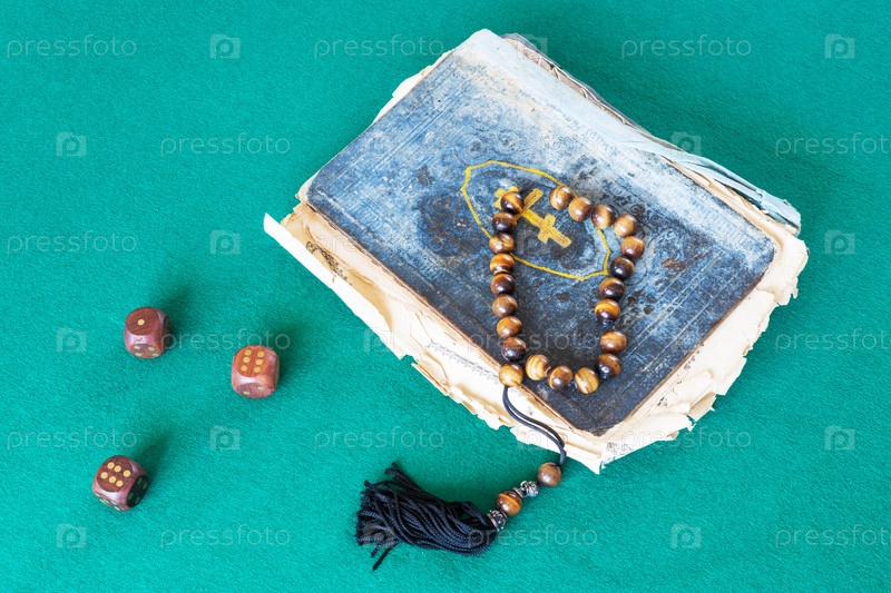 Церковная книга, четки для беспокойства и три деревянных кубика