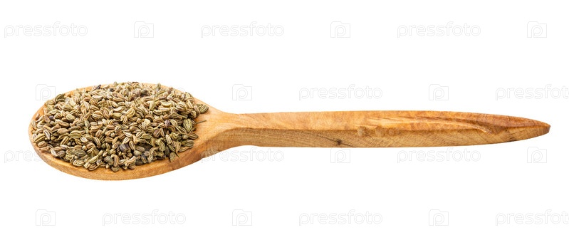 Деревянная ложка с семенами аджваина изолирована