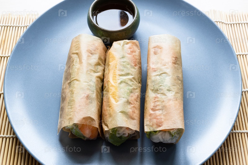 Завернутые вьетнамские свежие булочки Nem Cuon крупным планом