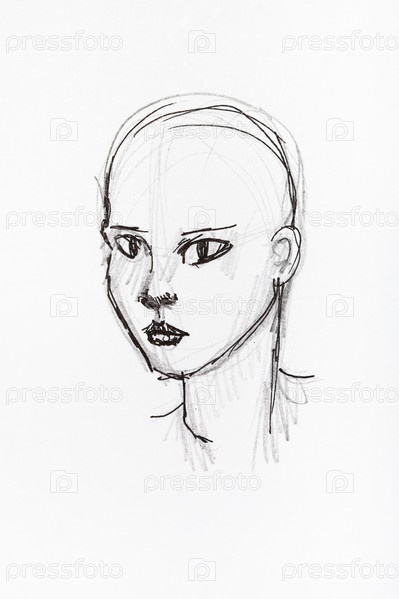 Лысая женская голова, нарисованная черными чернилами