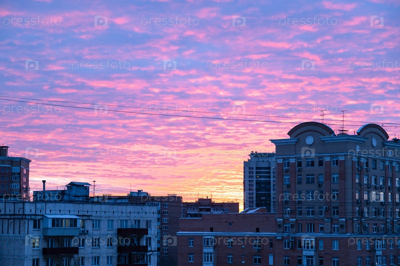 Розовое и голубое небо над жилыми домами