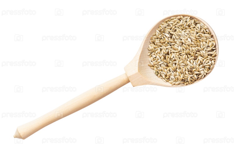 Вид сверху на семена канареек скальолы в деревянной ложке