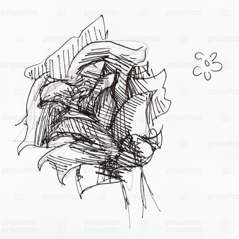 Эскиз цветка, нарисованный черными чернилами