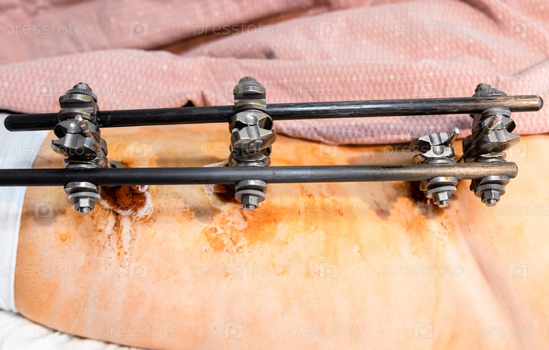 Вид сверху устройства внешней фиксации на бедре