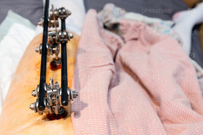 Вид от первого лица устройства внешней фиксации на бедре