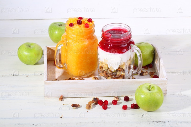 Фруктовые коктейли на белом столе