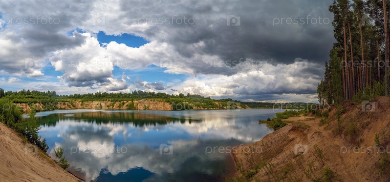 Водный пейзаж с облачным небом над Пугаревскими каменоломнями. Всеволожск. Ленинградская область